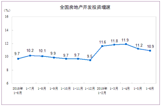 国家统计局今日公布数据显示,2019年1—6月份,全国房地产开发投资61609亿元,同比增长10.9%,增速比1—5月份回落0.3个百分点。