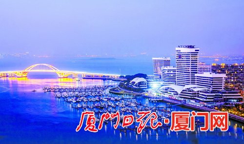 华灯初上,建设中的五缘湾游艇综合体初露美丽容颜。(厦门路桥游艇旅游集团有限公司供图)