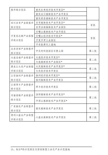 上证报中国证券网讯 据发展改革委网站8月30日消息,国家发展改革委、科技部等五部委发布《关于进一步推进产业转型升级示范区建设的通知》(以下简称《通知》)。《通知》指出,经地方申报、专家评估和统筹研究,拟支持北京京西、大连沿海、黑龙江大庆、江苏徐州、江西萍乡、河南西部、广东韶关、贵州六盘水等建设第二批产业转型升级示范区。五部委将进一步落实有关政策文件,研究细化投资、创新、产业、土地、金融等方面的支持政策,继续安排中央预算内投资支持示范园区和重点园区建设。
