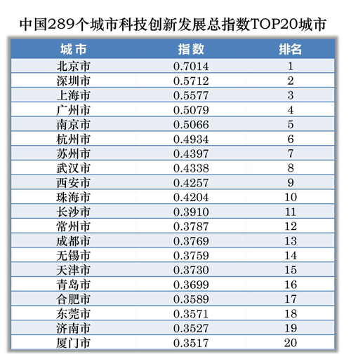 在近日举办的2020首科新年论坛上,首都科技发展战略研究院和中国社会科学院城市与竞争力研究中心联合发布的“中国城市科技创新发展指数2019”显示,在政策引导、投入加大的背景下,我国城市科技创新力明显增长。在我国289个城市的科技创新指数排名中,北京以0.7014领先,深圳、上海分别以0.5712、0.5577分列二三位。