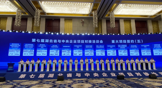 图为第七届湖北省与中央企业项目对接洽谈会签约仪式现场。(记者 龚联康 摄)
