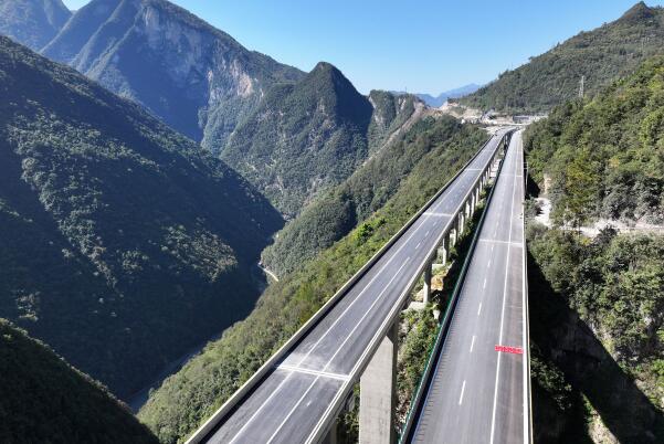 巫镇高速公路是国家高速公路网银百高速G6911巫溪至镇坪段,全长约48.7公里,总投资98.4亿元。目前,巫镇高速公路已全线贯通,预计2024年元旦前正式通车。图为巫镇高速公路四标段施工现场。新华社记者 邵瑞 摄