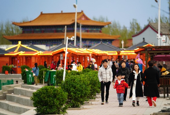 4月5日,游客在雄安新区雄县雄州镇雄山公园游玩。