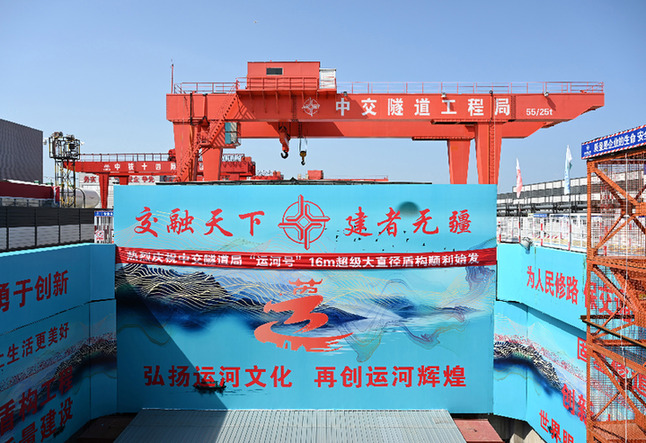 国产最大直径泥水平衡盾构机“运河号”在北京市通州区潞苑北大街成功始发。记者 潘悦 摄